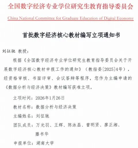 刘征驰教授领衔的《数据分析与经济决策》教材编写项目成功获批立项。团队成员包括制服诱惑